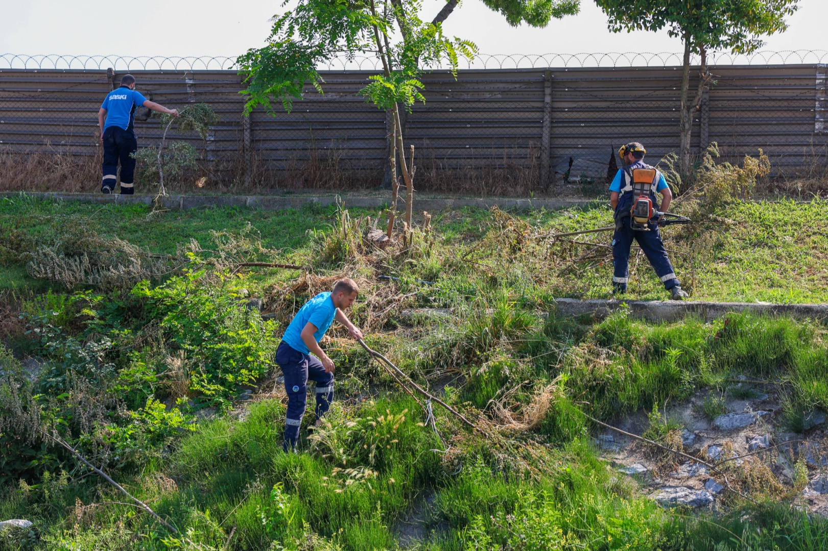SAKARYA (İGFA) – Sakarya Büyükşehir Belediyesi Su ve Kanalizasyon İdaresi (SASKİ), Çark Deresi kenarında ve içerisinde temizlik çalışması gerçekleştirdi. Bir yandan dere kenarında uzayan yabani otlar biçilirken diğer yandan ise dere içine atılan atık maddeler toplandı.