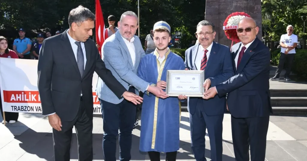 Son yıllarda Türkiye genelinde derece elde eden Trabzonlu ahilerin başarısına da değinen Başkan Genç, “Sanatındaki maharet kadar ahlaki duruşuyla ödüle layık görülen ustalarımızı, kalfalarımızı ve çıraklarımızı kutluyorum. Bu başarı, şehrimizin esnaf kültürüne sahip çıkmasının göstergesidir” ifadelerini kullandı.